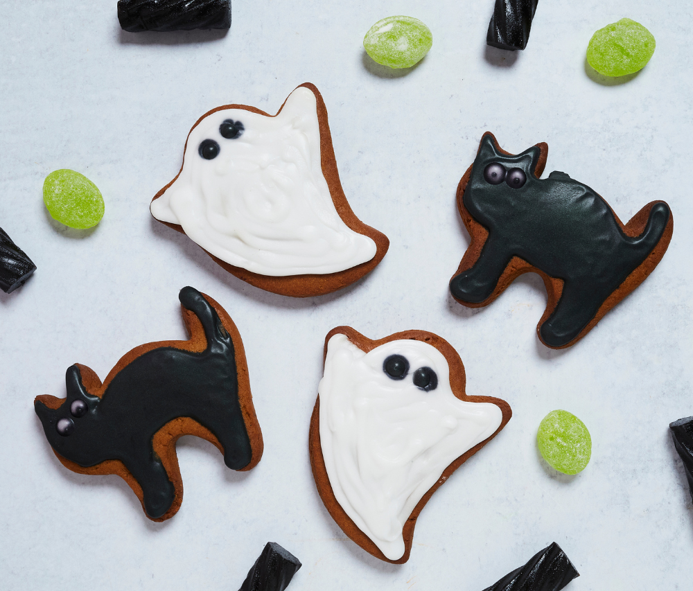 Decorate your own haunted house with gingerbread cookie house pieces, egg-free royal icing, and lots of spooky candy decor.